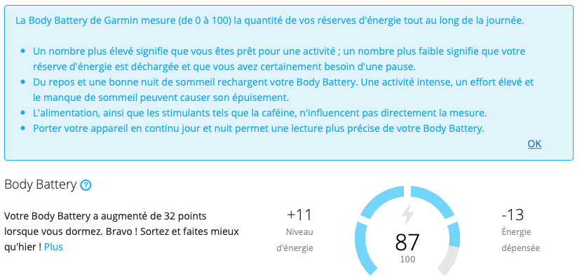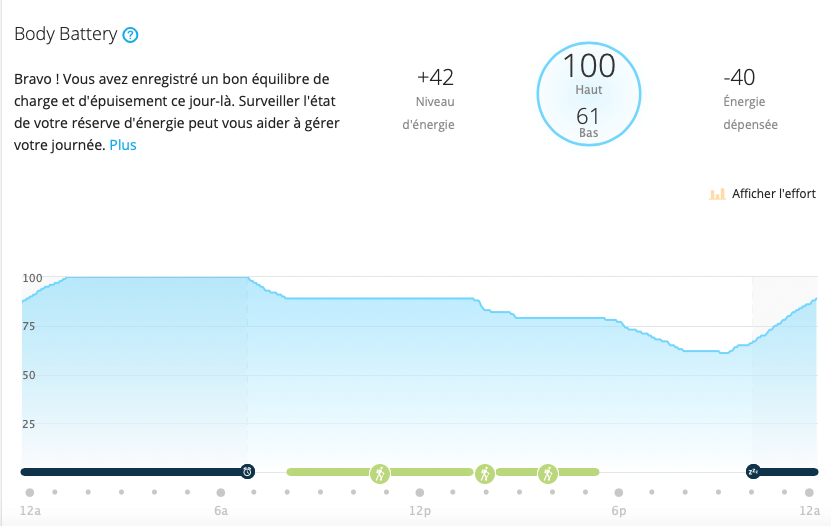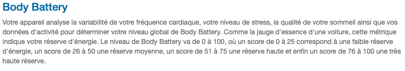 Misère, à chaque version de Forerunner on paye la montre plus cher pour des concepts de plus en plus tiré par les cheveux. Et maintenant voici le body battery … en gros c’est notre Batterie. Regarder la courbe …