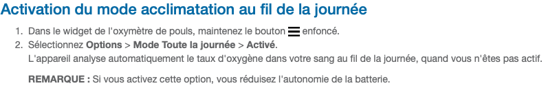 En fait cela ne sert que quand l’on est inactif .. si on le mets en continue sur la journée on est sûr de ne pas avoir de mesure. Car pour que la mesure soit bonne il faut être inactif pendant 30 sec. En gros cela marche très bien quand on dort :