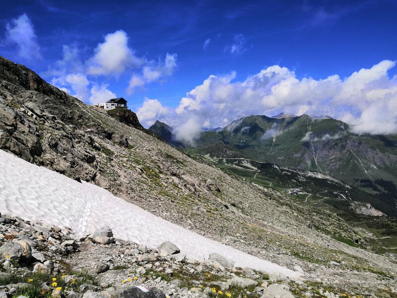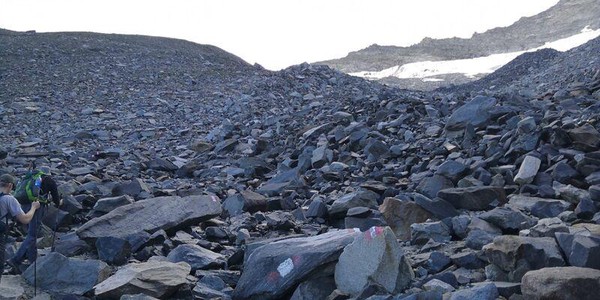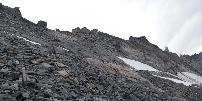 Attention c’est un parcours de haute montage ! On alterne entre les cailloux et la neige … il faut donc un équipement ( batons, crampons pour les chaussures, … ) Et aussi il faut bien regarder la météo.