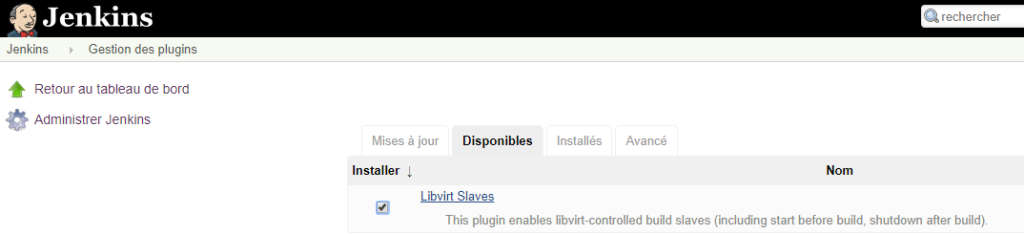 Sur Jenkins j’ai mis le bon plugins : Libvirt Slaves