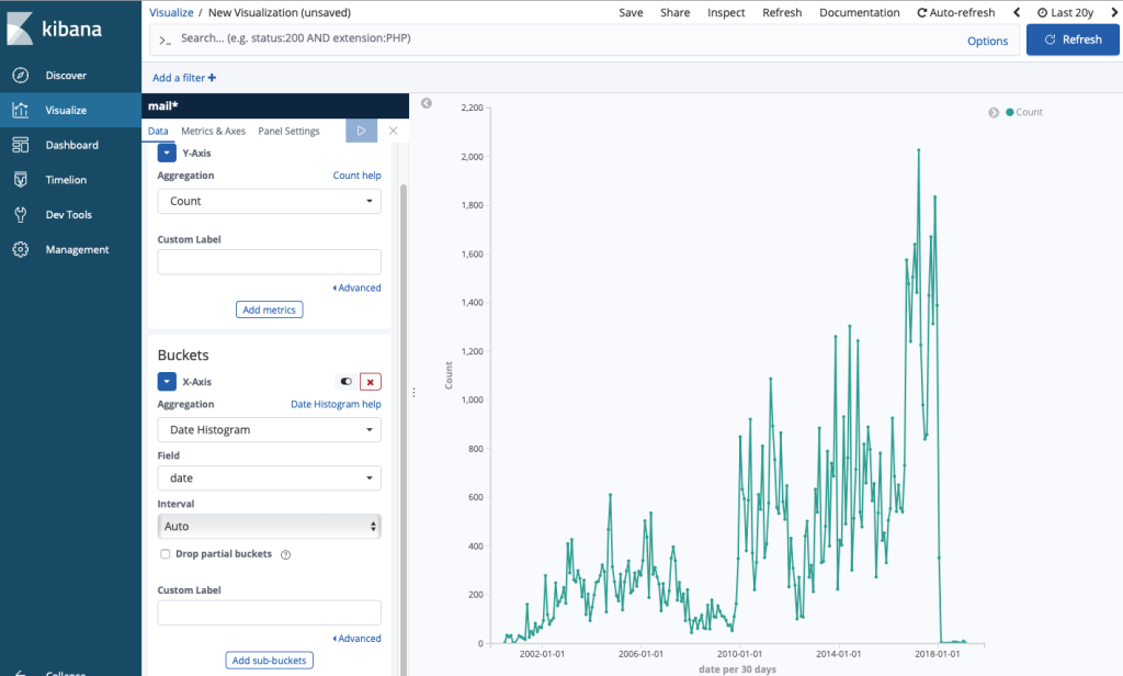 J’ai voulu faire un premier programme afin de découvrir l’API Elasticsearch, comme base d’information j’ai pris mes emails. C’est assez simple, toutes les personnes sous MacOS ont des emails …
