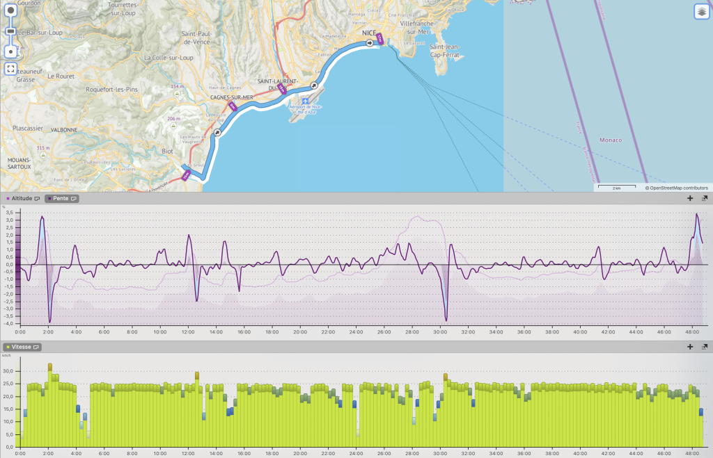 Un exemple : Biot <-> Nice en 53 minutes :