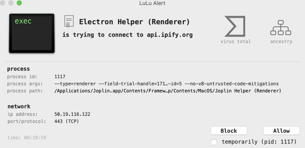 J’ai pu voir des appels à l’API : api.ipify.org Il y a donc l’utilisation d’une API pour la géolocalisation des IP. Je sais pas si c’est très bien … A suivre.
