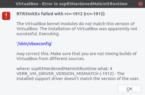 Il est impératif d’avoir une version de virtualbox > 6.1. Par défaut sur Ubuntu on a la version 5.0 …
