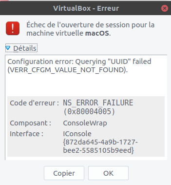 J’ai donc testé le script suivant : https://github.com/myspaghetti/macos-guest-virtualbox : macos-guest-virtualbox . Le but du script est de faire une machine Virtuel sous Ubuntu. A noter que le déroulement du script est très long, je pense qu’il faut compter 4 heures.