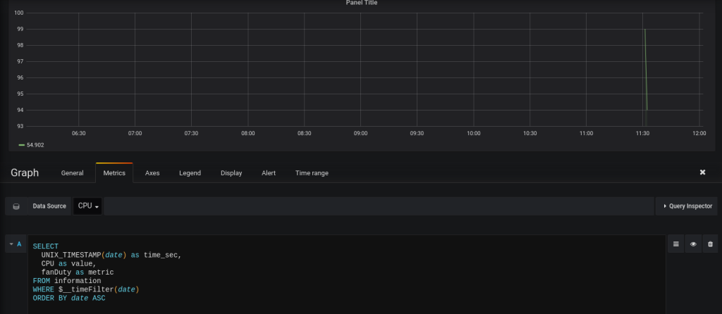 C’est assez simple, je prends la date et l’utilisation du CPU. Et aussi je note toutes les informations de tuxedofancontrol. J’ai mis le script toutes les 2 minutes dans ma crontab, ensuite je ferai un script pour Grafana.