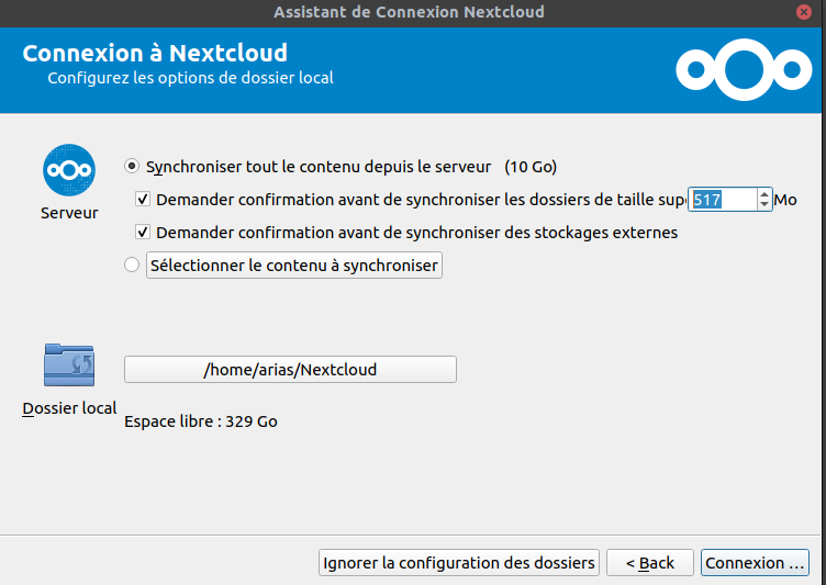 On a donc la fenetre suivante qui s’ouvre, et il suffit de faire la configuration :