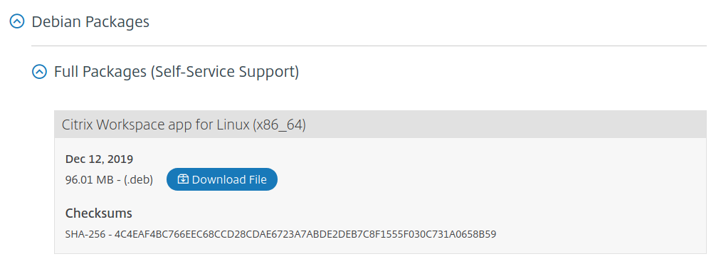 La première étape est le téléchargement du soft sur : https://www.citrix.com/downloads/workspace-app/linux/workspace-app-for-linux-latest.html .