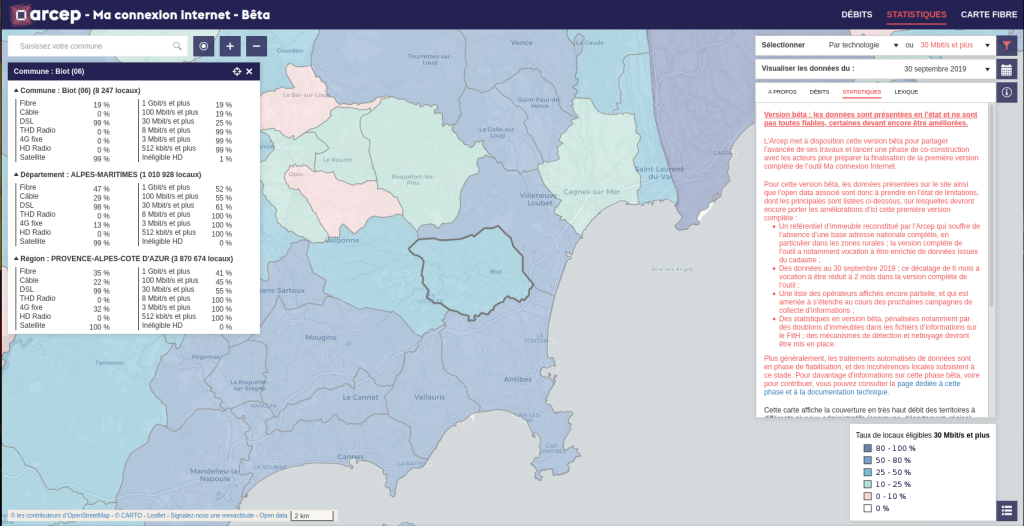 / ARCEP : Il est possible de voir sur Biot les données