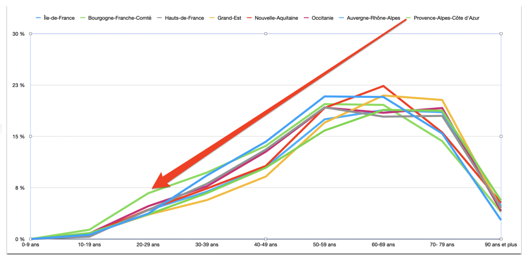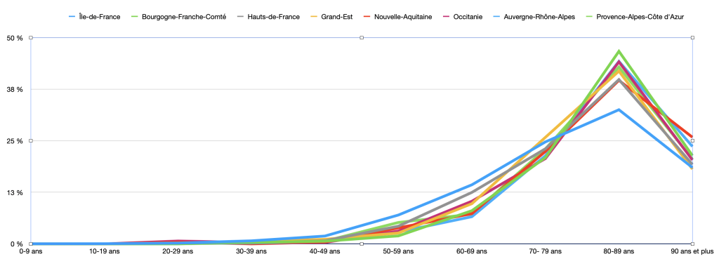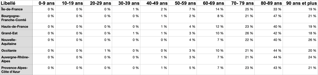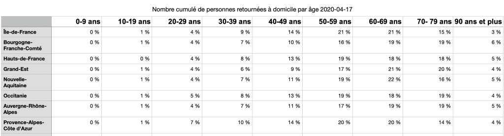.J’ai voulu travailler sur les statistiques du Coronavirus par tranche d’âge et aussi par département. Mais je n’avais que les données par région … Sniff.
