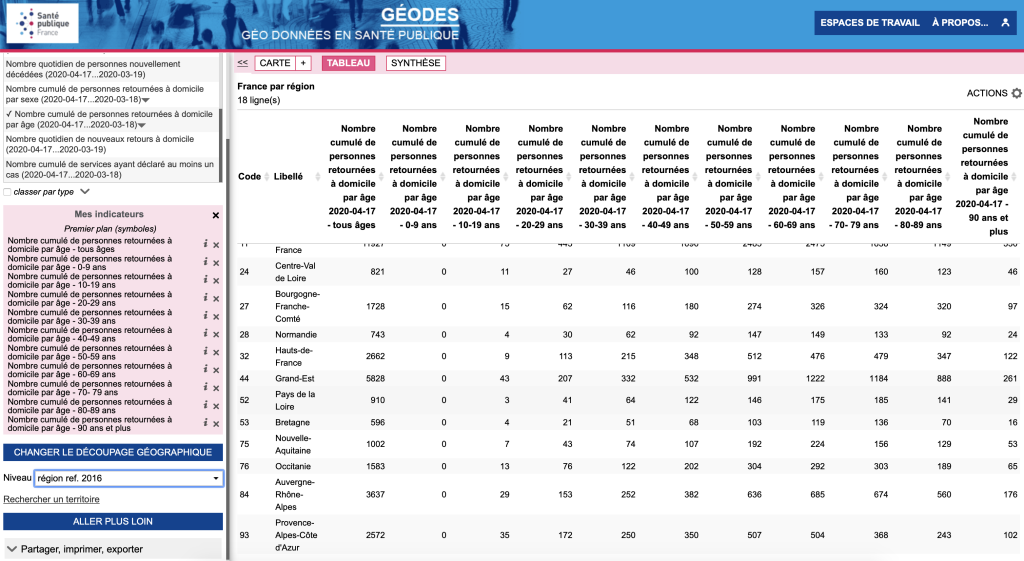 Je viens de découvrir le site Géodes : https://geodes.santepubliquefrance.fr . Un très bon site qui donne accès à énormément de données . :