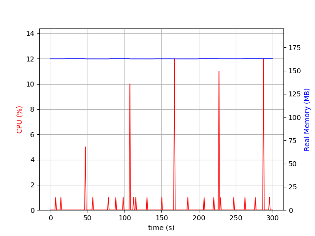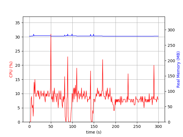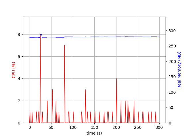 psrecord --interval 1 --duration 300 --plot slack-tail.png $(pgrep slack | tail -n 1) &