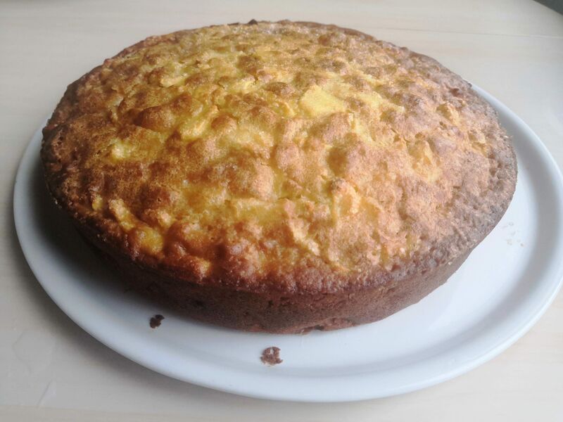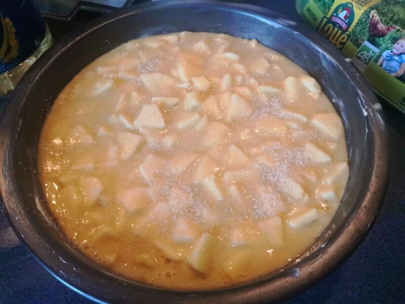 Ensuite on met le four à 160 °C pendant 50 min. à noter que je mets du sucre par dessus avant de mettre au four. Et il faut utiliser un moule avec les bords haut ( 6 cm )