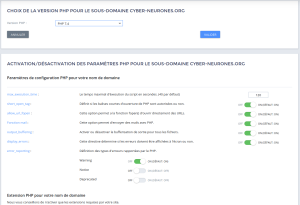 J’ai aussi essayé de changer la version de PHP et le temps d’exécusion (merci PHPNET.ORG) mais cela n’a rien changé aux problèmes.