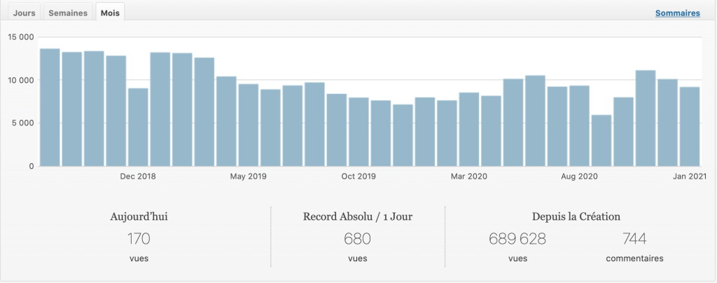 Voici les statistiques sur la base de donnée dédié :