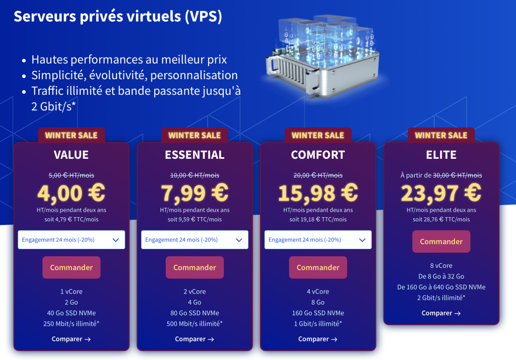 - Un ralentissement du site, surement une migration des sites de PHPNET.ORG. Depuis j’ai du changé de formule d’abonnement pour retrouver une qualité similaire (Performance 1 : 12,59 Euros/mois : https://store.nuxit.com/?plan=3914 : CPU : 1 Coeur - RAM : 2 Go - Espace : 50 Go - Emails : 10 BAL - BDD : MySQL privé ). Leur site : https://www.nuxit.com .