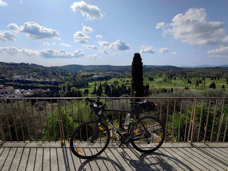Voici le circuit : Il n’y a pas trop de voiture et le tracé est bon. On fait 50 km et 1000m de dénivelé, ce qui est vraiment bien pour un entrainement. Départ : Pause à Opio :