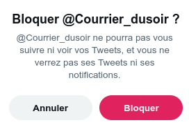 Plus de 500 abonnés. Pareil il faut bloquer sur Twitter : https://twitter.com/courrier_dusoir .