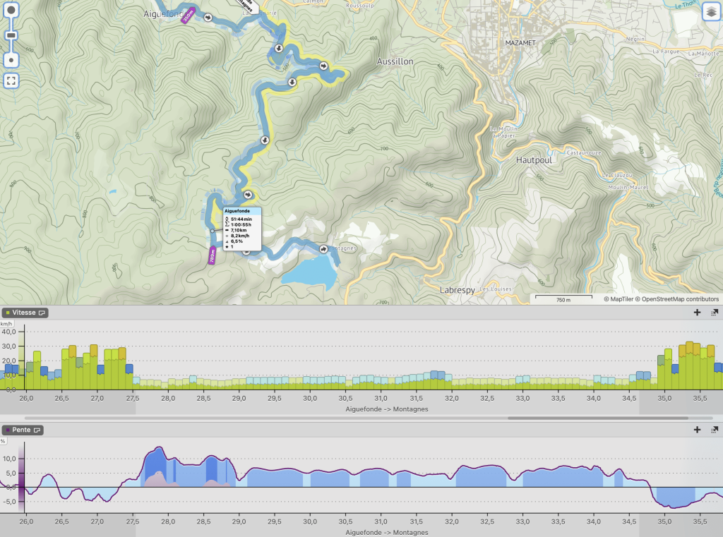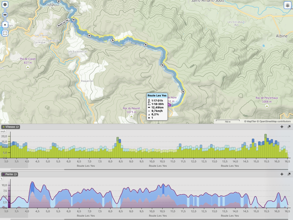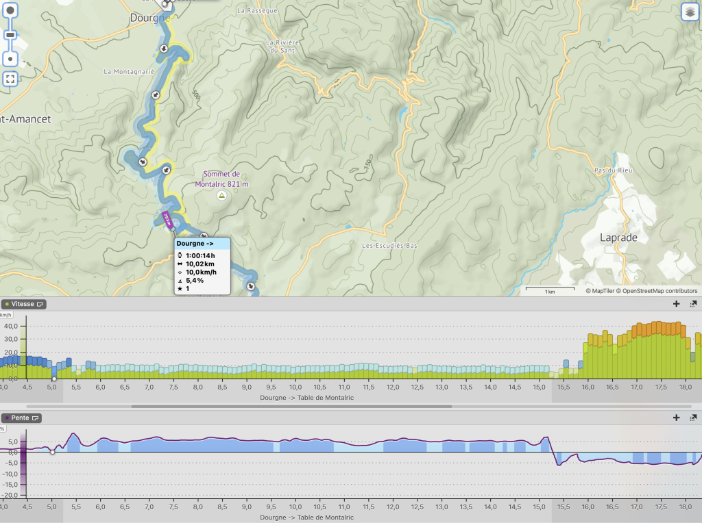 Entre Aiguefonde et le Lac de Montagnes, c’est un segment pour Gravel de 7,10 km à 6,5% (le maximum est à 15%)