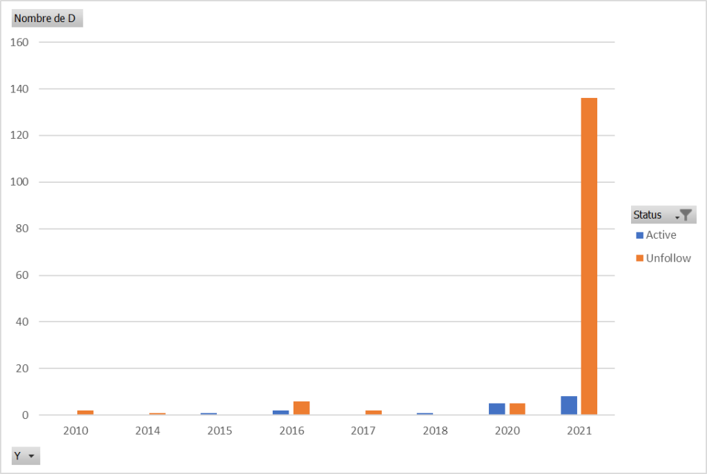 Comptes bloqués par an: