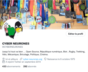 Je vais donc cloturer le compte CYBERNEURONES : https://twitter.com/CYBERNEURONES , que j’avais rejoint en septembre 2014. Actuellement je passe trop de temps à bloquer des comptes. Twitter est pourri par la désinformation qui est RT, à la base de la désinformation : Valeurs Actuelles, CNews, RT, Sputnik, France Soir, Sud Radio … Hanouna, Bercoff, Rioufol, Praud, Aberkane, Poulin, Di Vizio … mais aussi l’extreme droite …. Je pense donc qu’avec le changement de propriétaire cela va être pire. Misère.