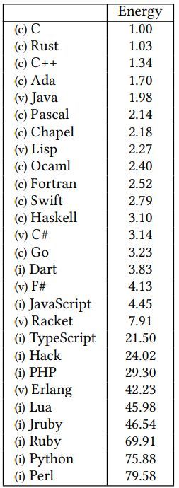 Artcile complet : https://medium.com/codex/what-are-the-greenest-programming-languages-e738774b1957