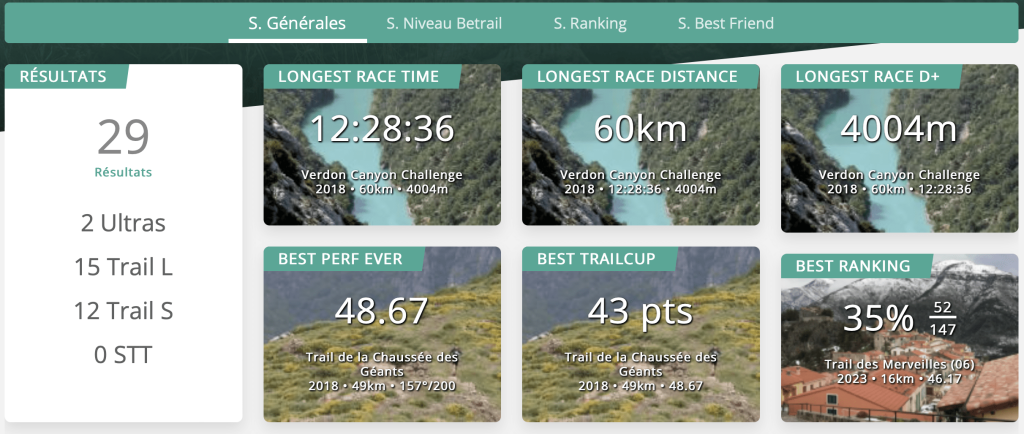 Il est donc préférable d’aller sur BeTrail pour suivre l’évolution en Trail :