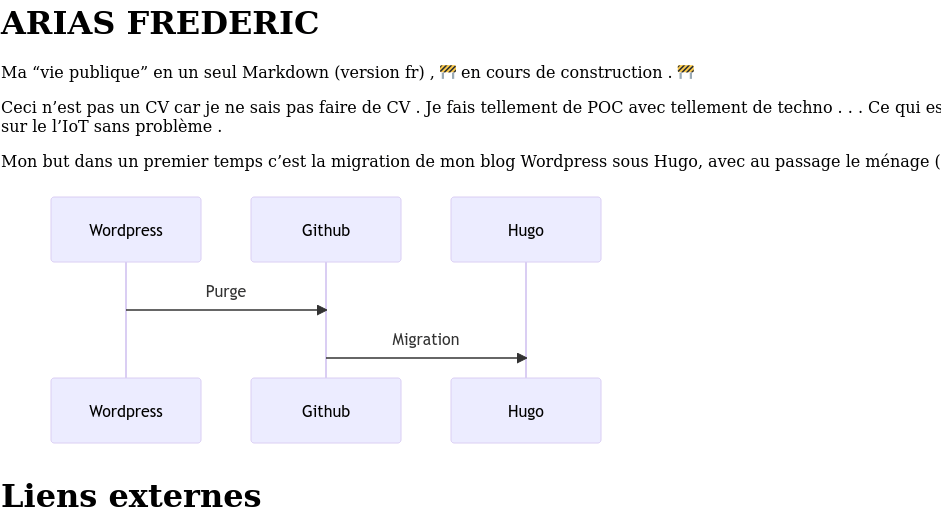 Pour l’instant cela ne marche absolument pas … j’ai fait un Markdown sous GIT : https://github.com/farias06/resume .
