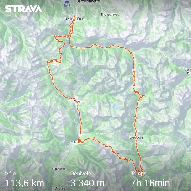 - Avec les pauses il faut compter 9h00 à 10h00 (pour mon niveau), STRAVA m’indique que j’ai fait 7h16 de vélo (donc 2h15 de pause).