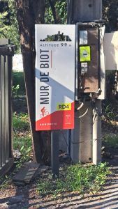 Comment peut-on être fier d’un panneau placer au plus mauvais endroit ? Combien de cyclistes s’arrêtent en bord de route pour se faire une photo alors qu’il n’y a pas de place ? Et que la vue n’est vraiment pas très jolie. Combien de stickers placés sur le “mur de Biot” ? Du marketing sans aucune connaissance des cyclistes et du goût des belles choses.