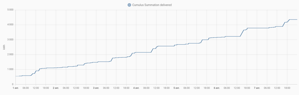 Je suis passé de 546 kWh à 4350 kWh. Donc 3804 kWh.