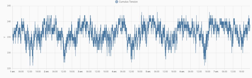 Il est à 35 Euros sur Amazon, mais je le déconseille vivement de l’acheter ( Site Web du Fournisseur : https://fr.elcb.net/ ) . Le nom exact sur Amazon : " Zigbee Interrupteur intelligent universel avec mesure de conso d’énergie, protection contre les surcharges, minuterie DIY Commande vocale compatible Alexa, Google Home Tuya/Smart Life APP TONGOU". Voici les mesures sur une semaine du module :