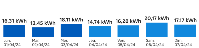 Je suis à 20 kWh par jour au maximum, j’ai exactement 116,23 kwh. Au maximum c’est 70% de la consommation donc 80 kWh. On est très loin des 3804 kWh. On doit avoir un facteur 50. J’ai du consommé 76,08 kWh.
