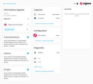 Je viens d’installer un “Tuya rainsensor TS0207_TZ3210_tgvtvdoc” mais je n’ai pas les informations sur HomeAssistant alors qu’il est à jours.